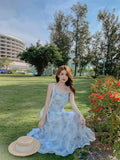 This floral midi dress features spaghetti straps and an elastic ruched back for a fitted, stylish look. Perfect for warm days and special occasions.